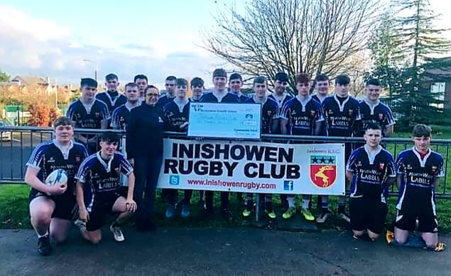 The Buncrana Credit Union today presented Inishowen Rugby Club with a cheque for 1,000 euro from the Credit Unions 50th Anniversary Community Fund. The Credit Union said that they are delighted to be able to support the community of Inishowen.